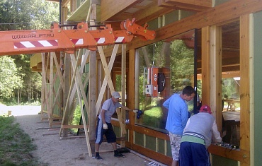 Монтаж стекла мини-краном и вакуумным захватом