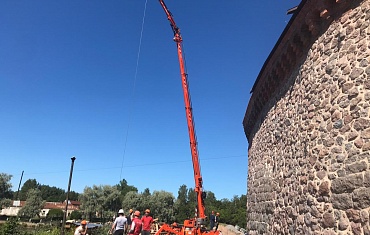 Мини-кран компании Арлифт произвел демонтаж старой и монтаж новой кровли на Замковом острове в Ленинградской области.