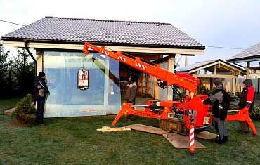 Наши объекты - Остекление гостевого домика мини-краном и вакуумным захватом Арлифт