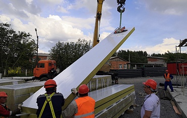 Наши объекты - Вертикальный монтаж длинных сэндвич-панелей в Уфе