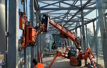 Наши объекты - Установка фасадного остекления с помощью мини-крана SPX 527 и вакуумного захвата ARLIFTER GS-350