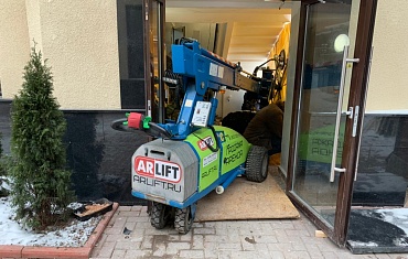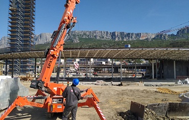 Сразу несколько единиц техники Арлифт принимало активное участие при монтаже пола керамогранитными плитами.