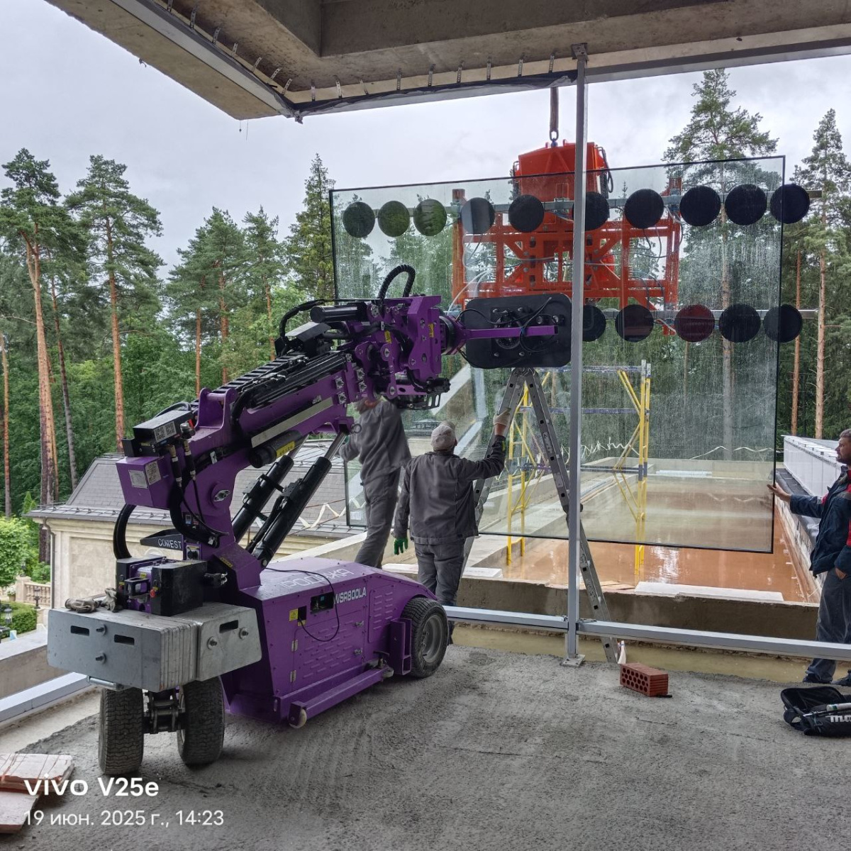 Остекление с помощью вакуумного захвата и стеклоробота Арлифт